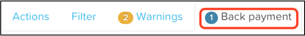 When referencing the Back payment tab in the pay run, this relates to a new tab added alongside the existing pay run tabs, for example: